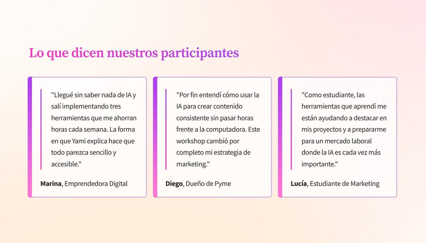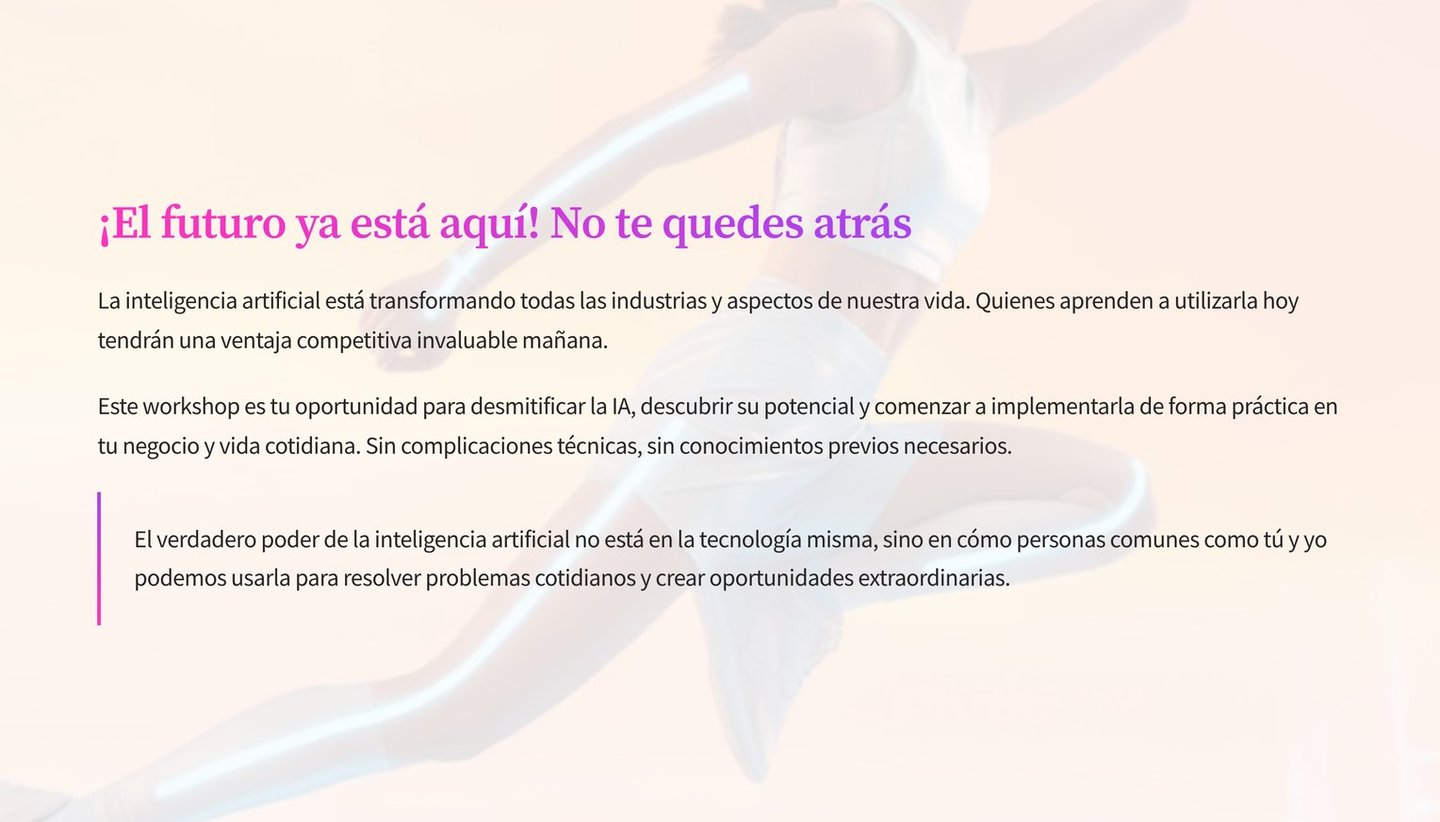 Transforma tu día a día y revoluciona tu negocio con la inteligencia artificial de la mano de Yami Alvez. ¡La tecnología que necesitas para potenciar tu creatividad y optimizar tu tiempo!